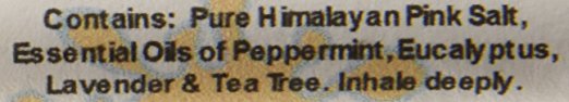 Contains pure Himalayan Pink Salt, Therapeutic Essential Oils of Peppermint, Eucalyptus, Lavender, Tea Tree. Inhale Deeply.