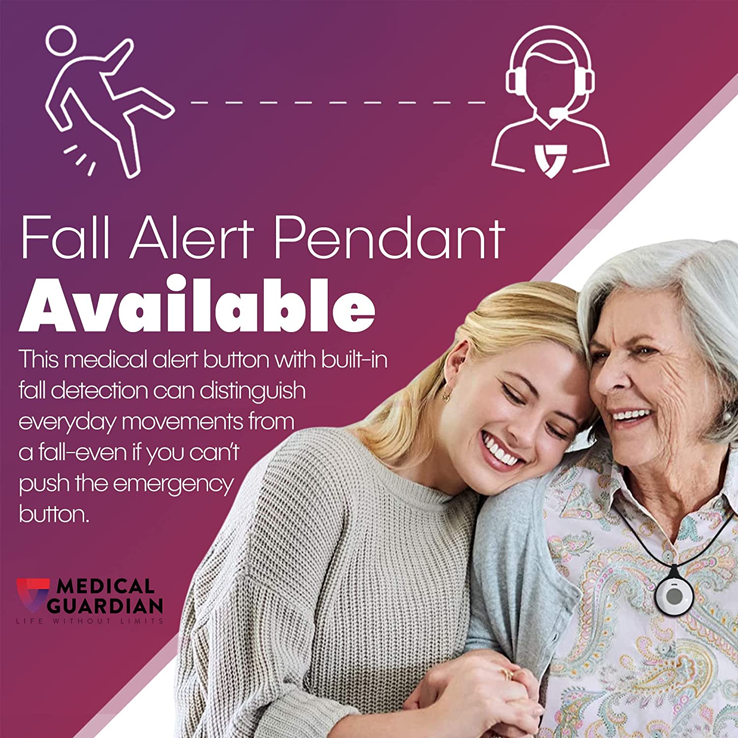 Medical Guardian - Medical Alert System, Medical Alert Bracelet and Necklace Alarm, Call Button System, Medical Alert Systems for Seniors, Monitoring 24/7 - Included Cellular Coverage (1 Month Free)