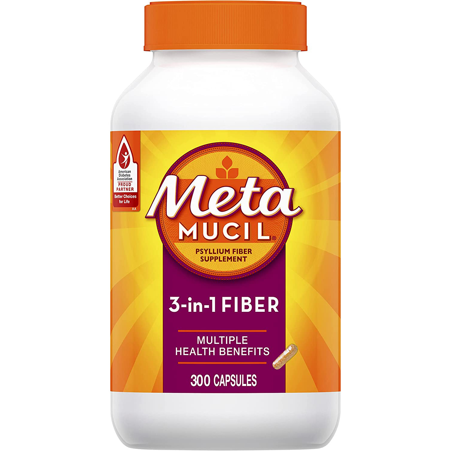 Metamucil, Daily Psyllium Husk Powder Supplement, 3-in-1 Fiber for Digestive Health, Plant Based Fiber, 300ct Capsules