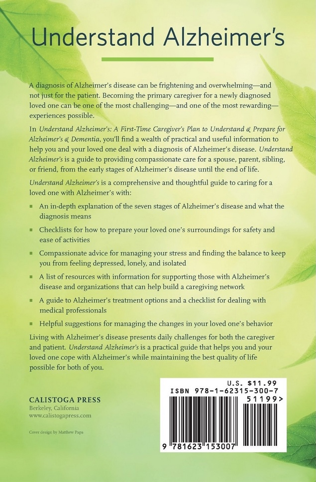 A diagnosis of Alzheimer’s disease can be frightening and overwhelming—and not just for the patient. Becoming the primary caregiver for a newly diagnosed loved one can be one of the most challenging—and one of the most rewarding—experiences possible. In Understand Alzheimer’s: A First-Time Caregiver’s Plan to Understand & Prepare for Alzheimer’s & Dementia, you’ll find a wealth of practical and useful information to help you and your loved one deal with a diagnosis of Alzheimer’s disease. Understand Alzheimer’s is a guide to providing compassionate care for a spouse, parent, sibling, or friend, from the early stages of Alzheimer’s disease until the end of life. Understand Alzheimer’s is a comprehensive and thoughtful guide to caring for a loved one with Alzheimer’s, with: