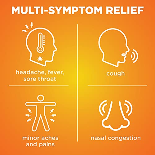 MULTI-SYMPTOM RELIEF: This cold remedy temporarily relieves headache, fever, sore throat, minor aches and pains, nasal congestion and cough due to the common cold and flu