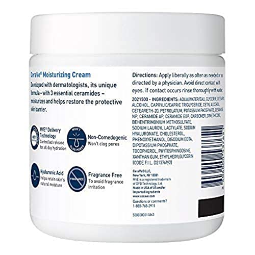 CeraVe Moisturizing Cream | Body and Face Moisturizer for Dry Skin | Body Cream with Hyaluronic Acid and Ceramides | Normal | Fragrance Free | 19 Oz | Packages May Vary