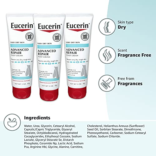 Includes three (3) 3 ounce tubes of Eucerin Advanced Repair Foot Cream