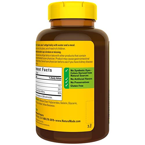 These gluten free Nature Made Magnesium 400 mg Softgels have no synthetic dyes, no artificial flavors, and no preservatives