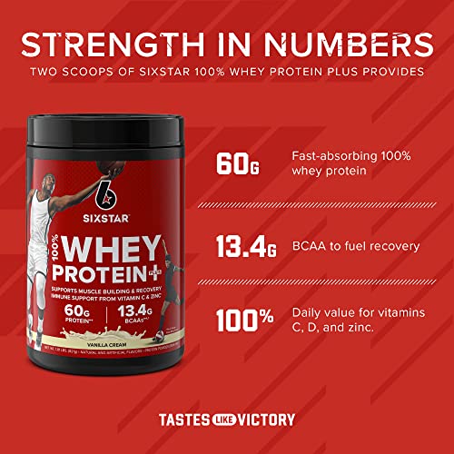 WHEY PROTEIN POWDER – Formulated with 30g of protein from ultra-pure 100% whey protein and an added immune support matrix, Six Star 100% Whey Protein Plus is the fuel you need after your workout or any time of day